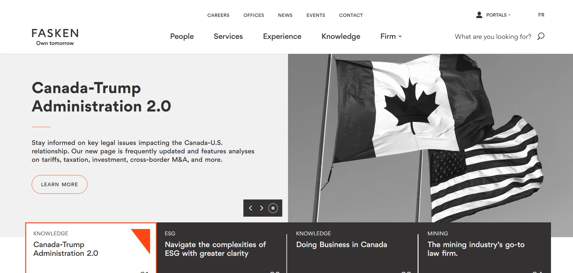 FASKEN law firm’s website deserves a place on our list. Its impressive hero area, easy-to-access navigation, and color palette make it stand out. It also boasts a very strong content structure. Fasken’s mobile interface is also well-designed and features the right elements for the user experience. Furthermore, the site is fast and boasts an inspiring design, typical of the best law firm designs.