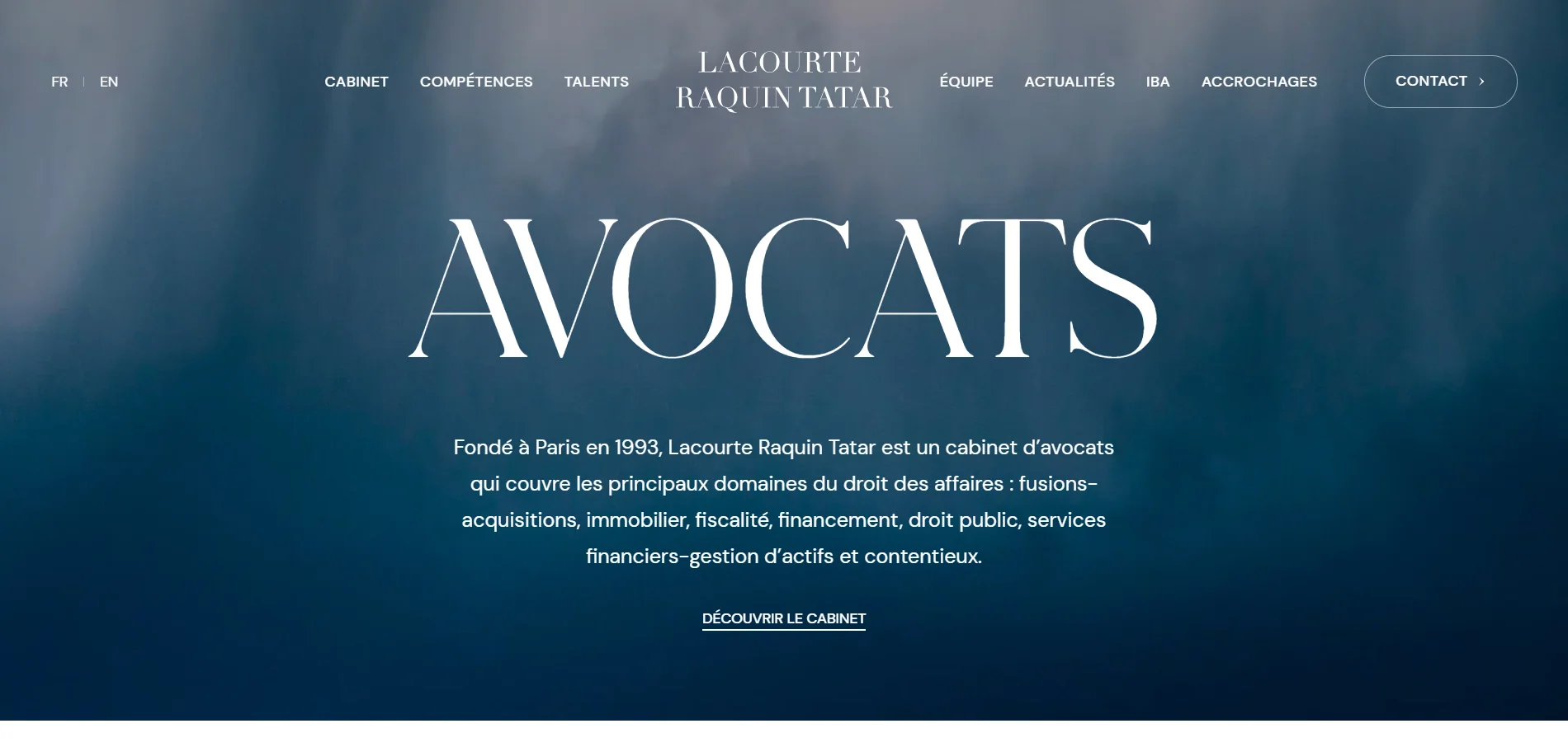 The designers of the Lacourte Raquin Tatar Law Firm have delivered on their investment. The triangular shape on the homepage draws us in. This triangular shape symbolizes power. The transition to contrasting colors is a blend of black and gray with blue. The Lacourte Raquin Tatar Law Firm website design is one of the most inspiring law firm websites.