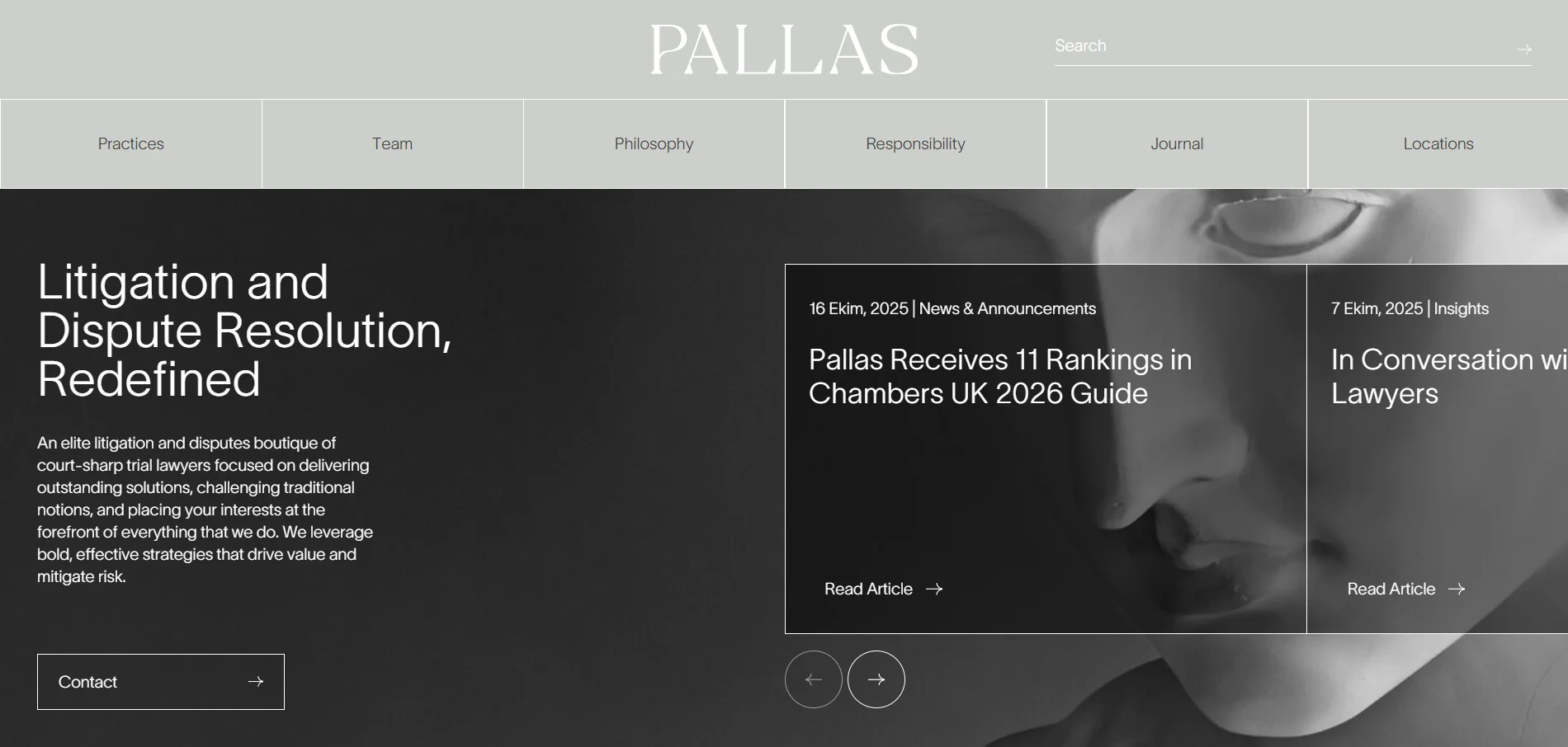 The Pallas Law Firm’s website is exactly what it should be. A Greek influence in the background and gray and black tones in the foreground. The comprehensive navigation and large search bar make for easy use. The site provides a complete service in terms of its integrity.