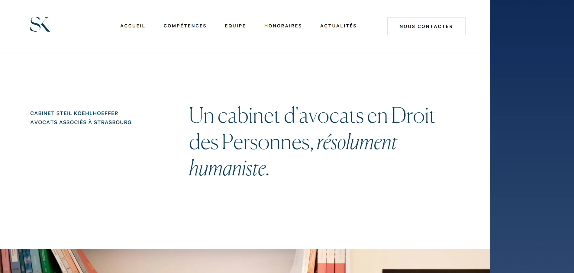 The SK Avocats law firm’s website was created with the idea that “this is exactly what a boutique law firm’s website should be like.” When I first viewed this site, I had the same reaction and immediately added it to my list. Many aspects were inspiring. The designer’s ingenuity is evident in the use of the far right column. Minimal design, blue colors. Great choice.