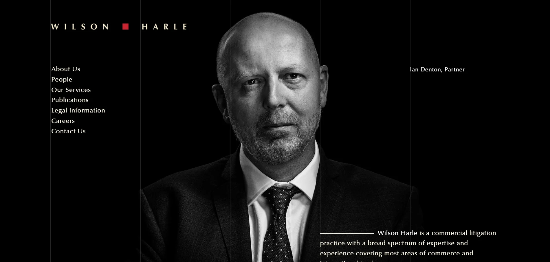 The Wilson Harle law firm’s website design highlights its lawyers. It’s a tour de force. The yellowish typography on black is striking. There’s unnecessary padding on the homepage. A VH 100 setting would have been better. But otherwise, it’s a perfectly fine law firm website.
